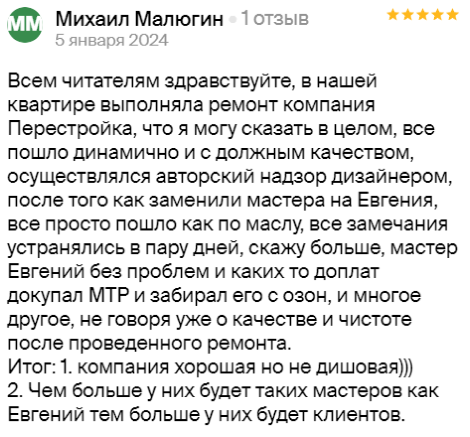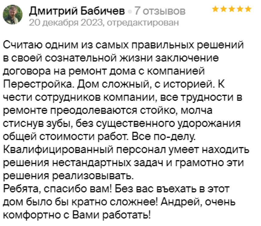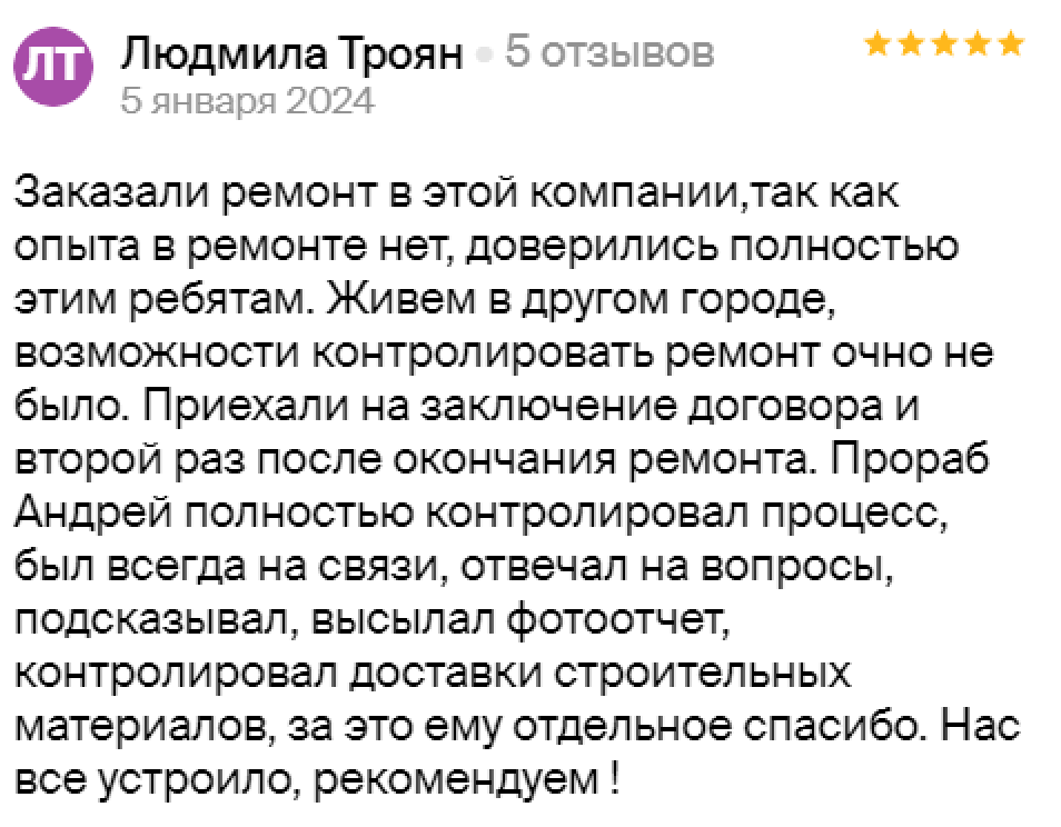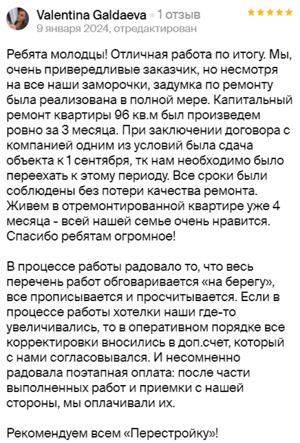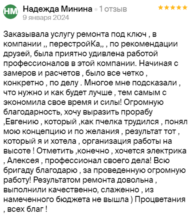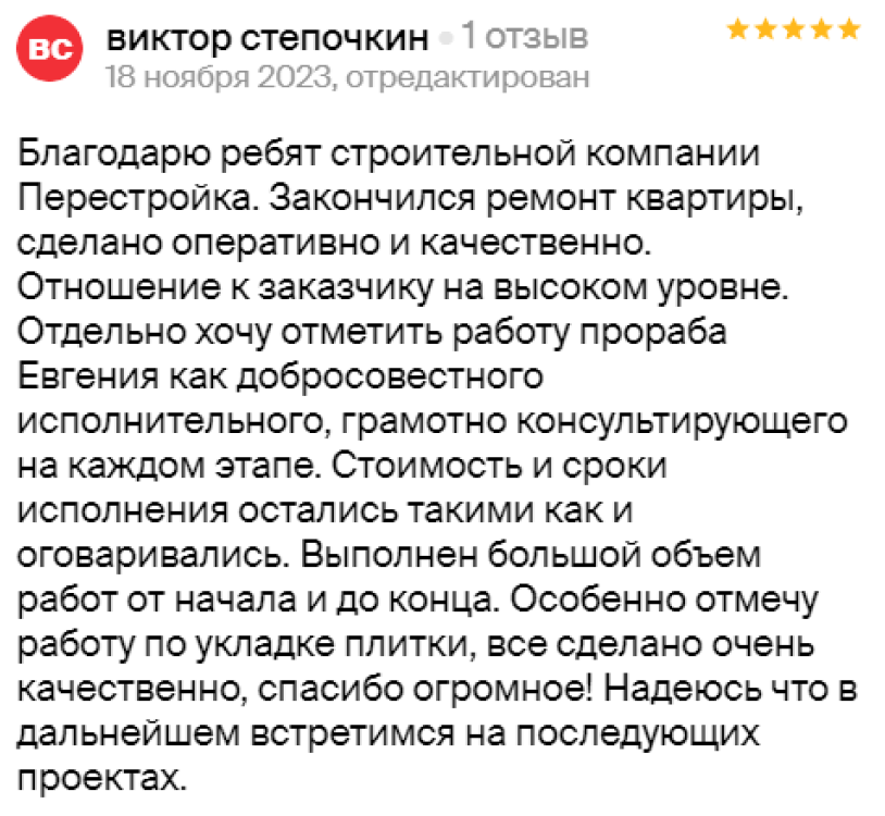 на любом этапе ремонта. Особенная благодарность прорабу