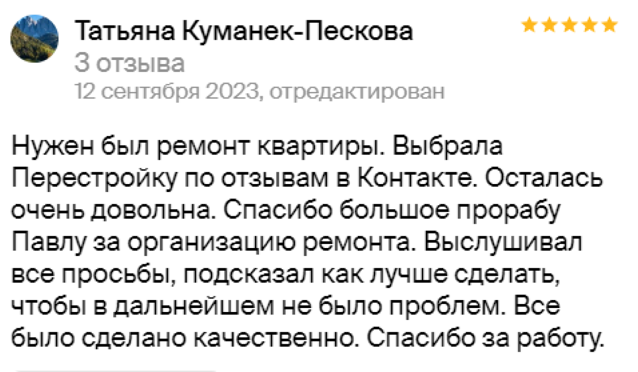 Спасибо компании за проведенный качественный ремонт.